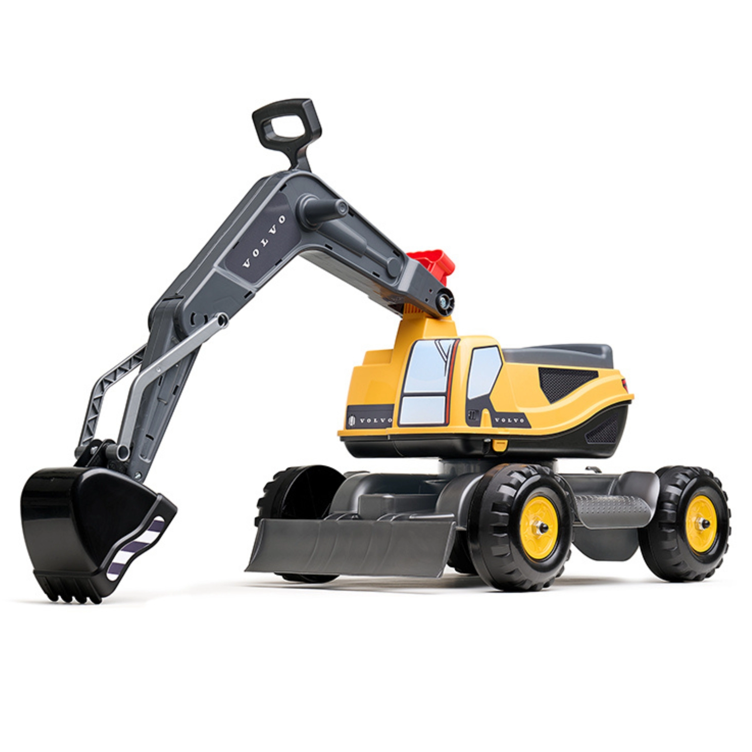 Det fuldt funktionelle arm- og skovlsystem arbejder som på en rigtig gravemaskine, så børn kan få en autentisk arbejdsoplevelse. Det åbne sæde fungerer desuden som et praktisk opbevaringsrum til småting.