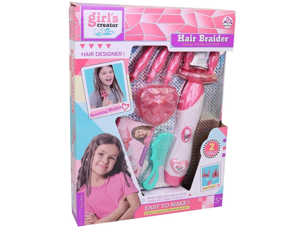 Sættet er fantastisk til daglige frisurer, skolearrangementer og børnefester. Den enkle betjening er let selv for begyndere, og takket være plastikudførelsen er legetøjet let og sikkert for børn fra 5 år.