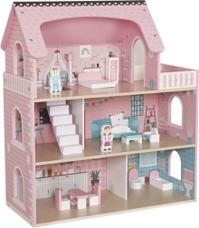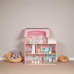 Der medfølger komplet møbeludstyr, så børn kan indrette værelserne med det samme og udvikle fantasien. Produktet er i overensstemmelse med europæiske standarder og er fremstillet af miljøvenligt træ, hvilket gør det til et ansvarligt valg for både familie og planet.