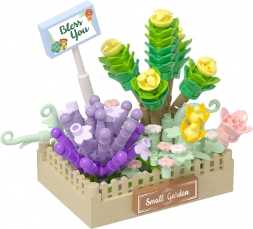 Mini KOCO-byggesæt: blomsterarrangement af sukkulenter i pastelfarver, 232 dele. Rustik urtepotte “Small Garden”. Fantastisk kreativ gave.