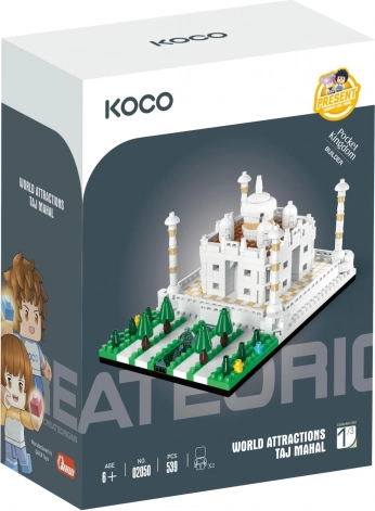 Oplev arkitekturens magi med mini byggesættet KOCO Taj Mahal. Dette præcist designede sæt giver en fantastisk byggeoplevelse, og resultatet er en imponerende model, der glæder både samlere og begyndere. De kompakte mål gør modellen til et elegant supplement på hylden eller skrivebordet.