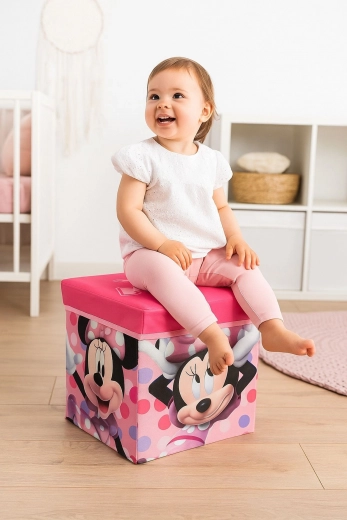 Gør børneværelset både praktisk og sjovt med motiv af MINNIE MOUSE. Denne sammenklappelige opbevaringsboks med solidt låg er ikke kun til opbevaring af legetøj, bøger eller byggesæt, men fungerer også som en behagelig sidde-taburet. Takket være den kubiske form og standardmål passer den i de fleste træorganisatorer og reoler.