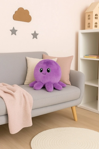Puden er lavet af 100% polyester, som er ekstra blød og behagelig at røre ved. De kompakte mål 35 × 35 × 35 cm gør den til en fantastisk rejsemakker i bil, fly og tog. Blæksprutte-designet passer ind på ethvert børneværelse og glæder som et stilfuldt og funktionelt tilbehør.