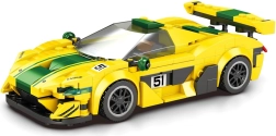 Modellen imponerer med en lav, racerpræget silhuet, brede skærme og en markant bagspoiler for et autentisk racelook. Den kontrasterende brede grønne stribe understreger de dynamiske linjer og giver bilen et aggressivt udtryk.