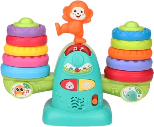 Den interaktive vægt formet som en sød lille løve lærer børn principperne for vejning og balance. Armene vipper alt efter antal og vægt af de placerede ringe, hvilket naturligt udvikler logisk tænkning og grundlæggende matematiske begreber. De farvede dele i forskellige størrelser opfordrer til sortering, sammenligning og stabling.