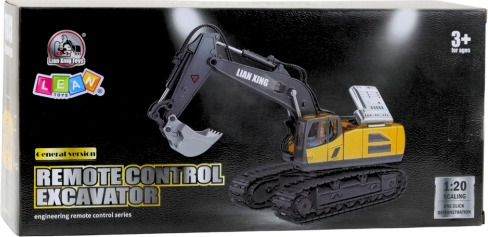RC bæltegraveren i skala 1:20 efterligner troværdigt både udseende og adfærd som en rigtig maskine. Takket være 11-kanals styring klarer den let kørsel frem/tilbage, styring, løft og sænkning af armen, præcis kontrol af skovlen samt jævn tårnrotation. Metaldele og bæltechassis sikrer stabilitet og holdbarhed selv på ujævnt underlag.