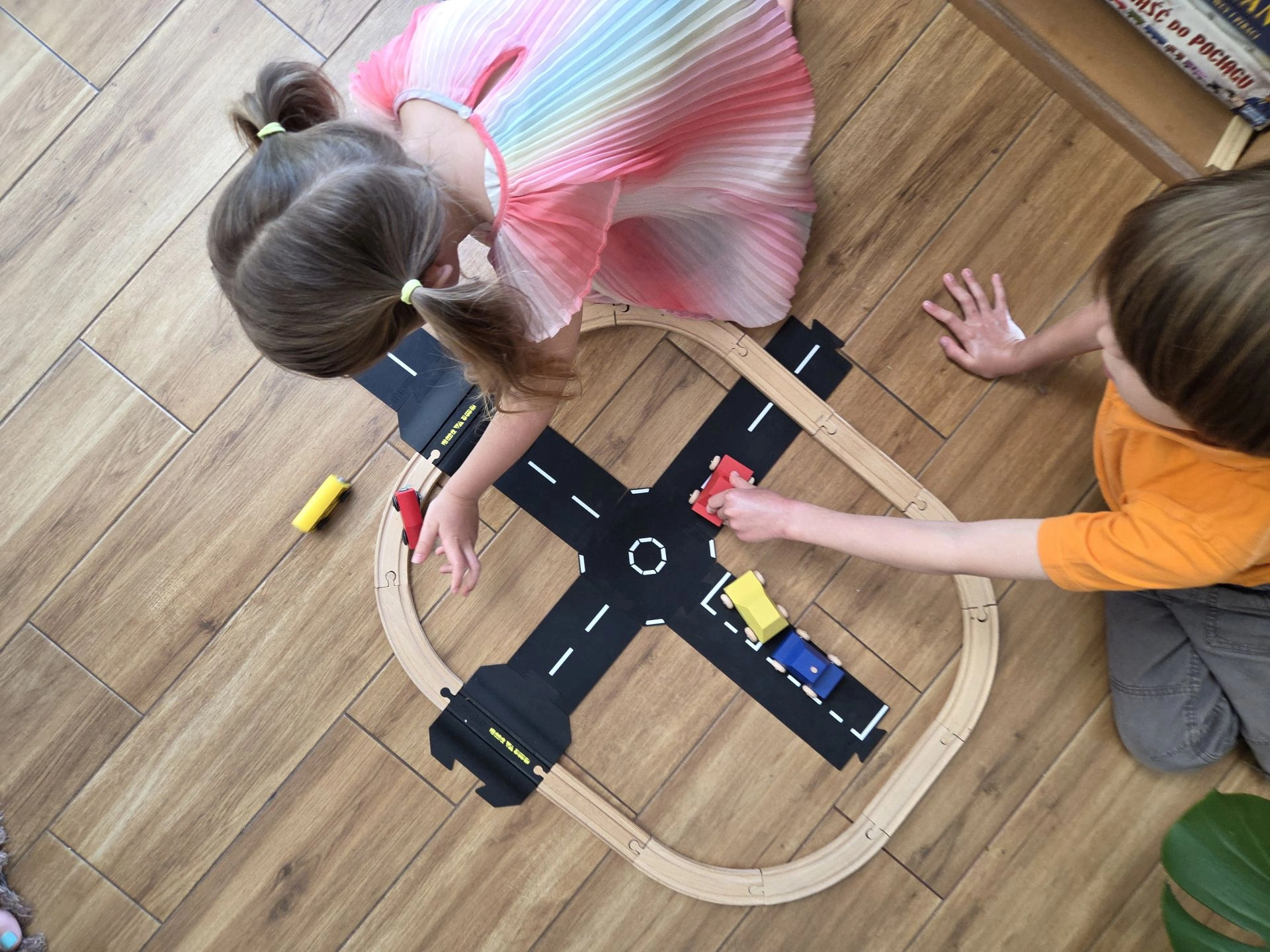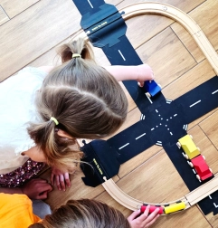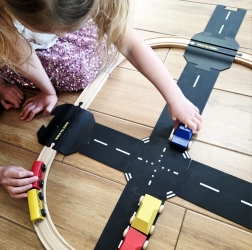 Et praktisk supplement til sættene City og Metropolis, der bringer en universel løsning i form af dobbeltsidede dele: på den ene side en lille rundkørsel, på den anden et X-kryds. Det gør det let for børn at ændre kørselsretning, forbinde ruter og skabe nye lege-scenarier både inde og ude.