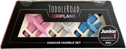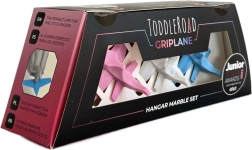 Hangar Marble-sættet er det ideelle supplement til Lufthavn-sættet og giver børn glæden ved fri, sikker og fantasifuld leg. De tre silikonefly i blide pastelfarver med iøjnefaldende marmormønster ligger godt i små hænder og stimulerer sanserne med deres behagelige materiale.