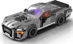 Dette tekniske byggesæt vil glæde fans af klassisk amerikansk motorkultur. Modellen, inspireret af en legendarisk GT fra tresserne, imponerer med muskelbundent karrosseri, lav profil og markante hjulkasser, som giver den et udpræget racerpraeg. To hvide striber, der løber fra motorhjelmen over taget og helt til bagenden, understreger den autentiske racer-stil.
