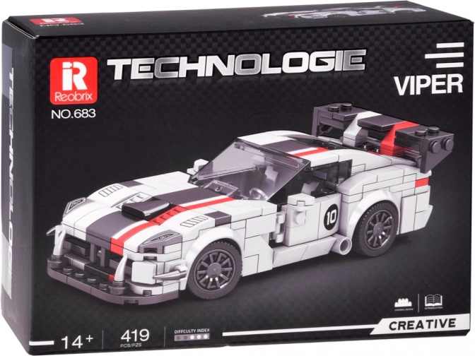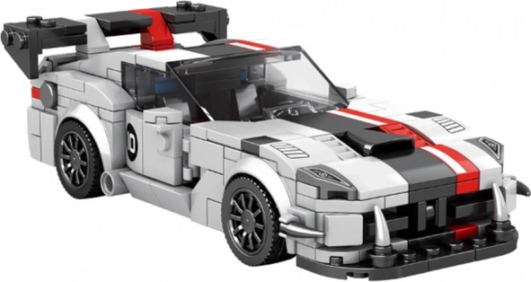 Byg en ikonisk model af en supersportsvogn inspireret af en amerikansk klassiker. Sættet indeholder 419 dele, en hvid karrosseri med sort‑rød racerstribe og en markant bagspoiler. Ideelt til fans af tekniske byggesæt og bilentusiaster i alderen 14+.
