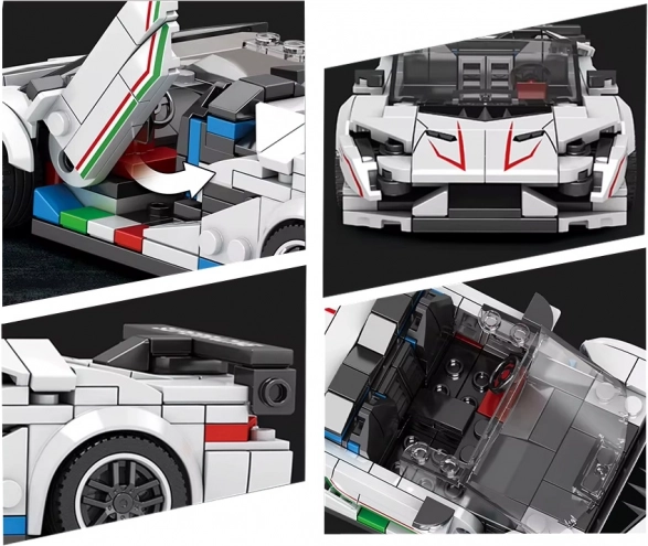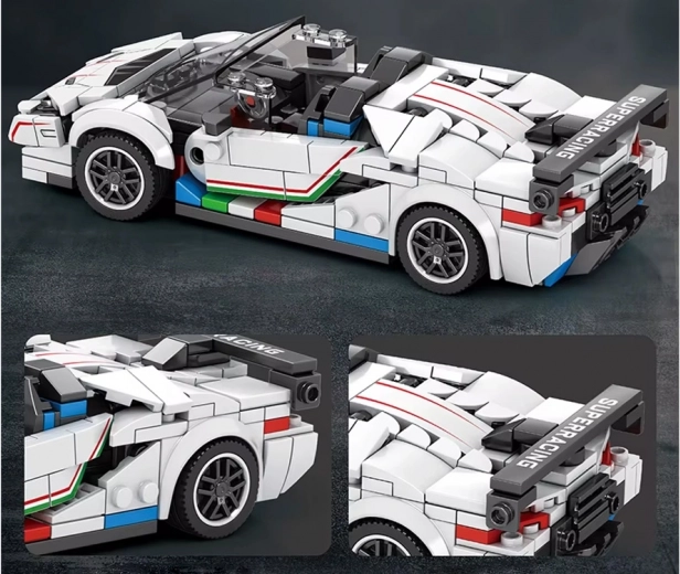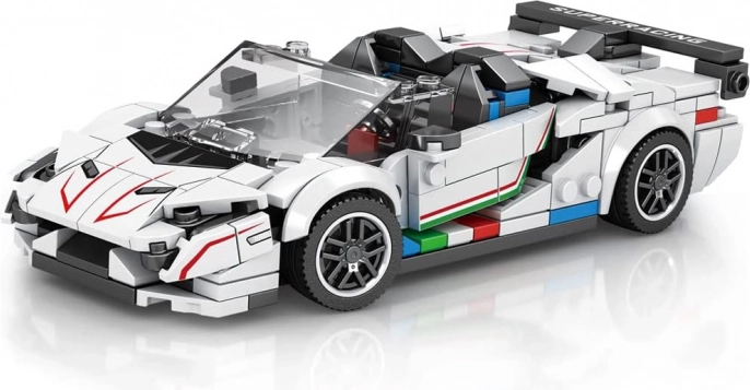 Byg din egen hvide supersports-cabriolet med spoiler af 348 dele. Modellen imponerer med aerodynamisk design, lav profil og sportsfælge. Ideel til fans af tekniske byggesæt og moderne bilestetik – mellem-svær bygning for alderen 14+.