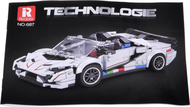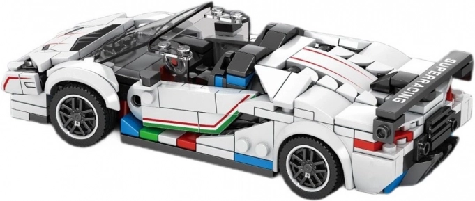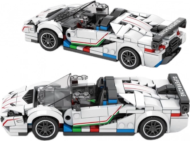 Teknisk byggesæt af hvid supersports-cabriolet med spoiler. 348 dele, sporty look, klistermærker, middel sværhedsgrad. Ideel til 14+.