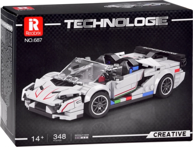 Teknisk byggesæt – hvid supersports-cabriolet med spoiler, 348 dele