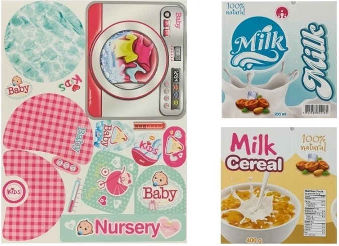 - Rigt tilbehør: børne“kosmetik”, bestik, kartonmadvarer, klistermærkesæt.