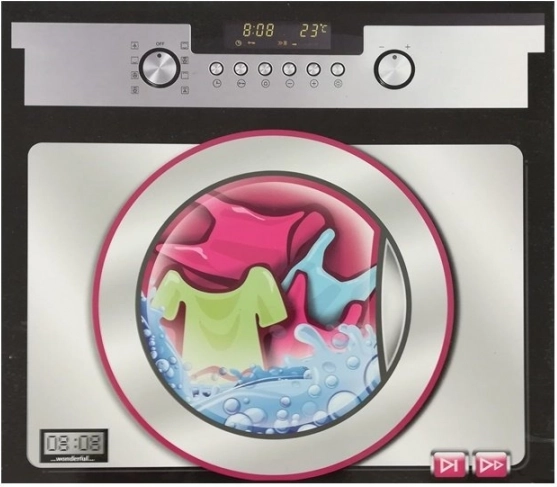 - Realistiske elementer: åbnbar “vaskemaskine”, vask med vandhane, sæde til baby.