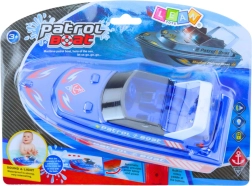 Tag på vandeventyr med den blå patruljebåd, som gør hvert bad levende. Realistiske lys- og lydeffekter sammen med automatisk vandsprøjt og et roterende padlehjul på undersiden sikrer jævn bevægelse på vandoverfladen og masser af sjov.