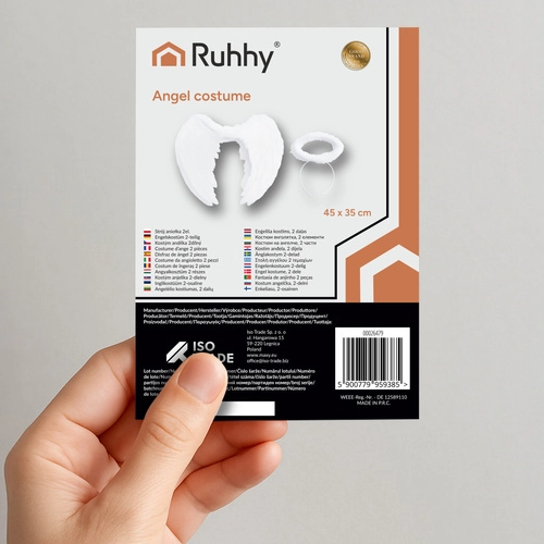 Praktiske elastiske stropper sikrer stabil og komfortabel brug selv ved længere arrangementer. Det komplette sæt med vinger og glorie fuldender straks kostumet og fungerer også som stilfuld dekoration – hæng det på væggen, over stoleryggen eller brug det i scenografi.