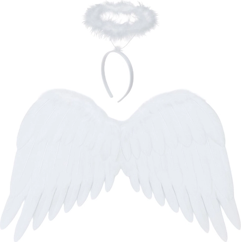 Lette hvide englevinger med en kysseblød glorie på hårbøjle er ideelle til et kostume som engel, fe eller fantasifigur. Takket være elastiske stropper bæres de behageligt, og deres fjerlook ser realistisk ud både i virkeligheden og på billeder. Perfekt til karneval, Halloween, børneoptrædener og fotoshoots, og de kan også bruges som stilfuld dekoration på værelset.