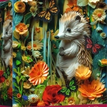 - Detajleret motiv af pindsvin i den originale Paper Art-stil
