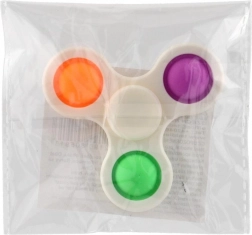Spinner Bubble Pops giver dobbelt portion afslapning: behagelig drejning for at berolige sindet og poppable bobler for en dejlig taktil stimulering. Den er let, robust og med en diameter på 7 cm passer den i enhver lomme eller skoletasje.