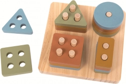 Hver brik har et forskelligt antal huller, hvilket tydeligt viser børnene, hvordan man sorterer både efter form og mængde. Udvikler logik, koncentration og basal talforståelse.