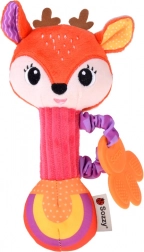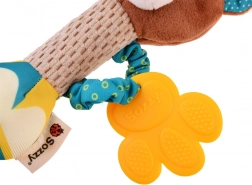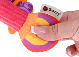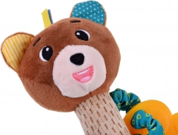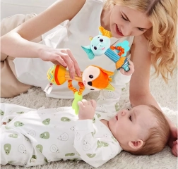 Denne multisensoriske legeting giver både tryghed og underholdning: indeni er der en rangle med en behagelig lyd, ører af knitrende stof indbyder til udforskning, og når man trykker på maven, lyder en glad pivelyd. Kontrastfarver og forskellige teksturer stimulerer naturligt syn, hørelse og følesans.