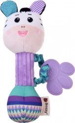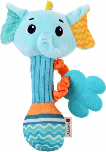 Den indbyggede rangle med en behagelig, melodisk lyd og de knitrende ører støtter barnets opmærksomhed og sanseudvikling uden uønsket støj.