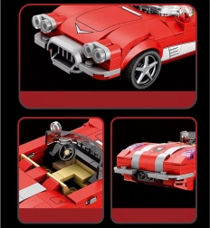 Pakken indeholder sølvfarvede fælge og klistermærker til at fuldende detaljerne, så den retro karakter inspireret af legendariske sportsvogne fra 50’erne træder tydeligt frem. Byggesættet er designet til at give en fængende og tilfredsstillende byggeoplevelse for mere erfarne byggere.