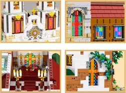 Takket være LED-belysning får modellen en unik charme – lyset skinner gennem vinduesmosaikkerne og fremhæver de arkitektoniske linjer. Byggesættet er gennemtænkt opdelt i poser for overskuelig bygning og indeholder en billedvejledning samt dekorative klistermærker for et autentisk udseende.