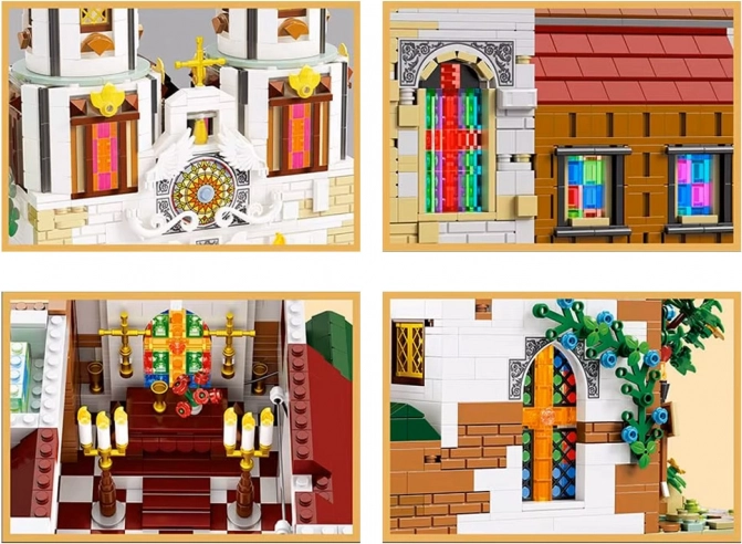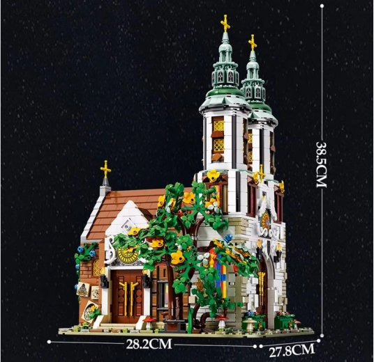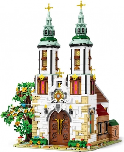 Dette avancerede byggesæt gengiver trofast silhuetten og udsmykningen af en af Krakóws ældste kirker. Modellen fremhæver to høje tårne med gyldne kors, en detaljeret portal, vinduesmosaikker af farvede, gennemsigtige klodser og rige udvendige elementer med grøn beplantning. Interiøret prydes af et alter med gyldne detaljer, lysestager, blomster og bænke.