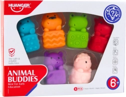 Dette sæt med 6 bløde gummidyr begejstrer børn med sine klare farver og det sikre, fleksible materiale. Hver figur er cirka 8 cm, ligger godt i barnets hånd og indbyder til at klemme, gribe og udforske teksturer – derhjemme og i badet.