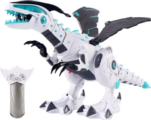 Denne futuristiske RC‑dinosaur giver børn timevis af aktiv underholdning. Den er let at styre med den medfølgende fjernbetjening, kan bevæge sig, udsender effektfulde lyde, lyser og fortæller korte historier, hvilket gør legen endnu mere interaktiv og fængende. Den robuste konstruktion og det attraktive design gør den til et oplagt gavevalg.
