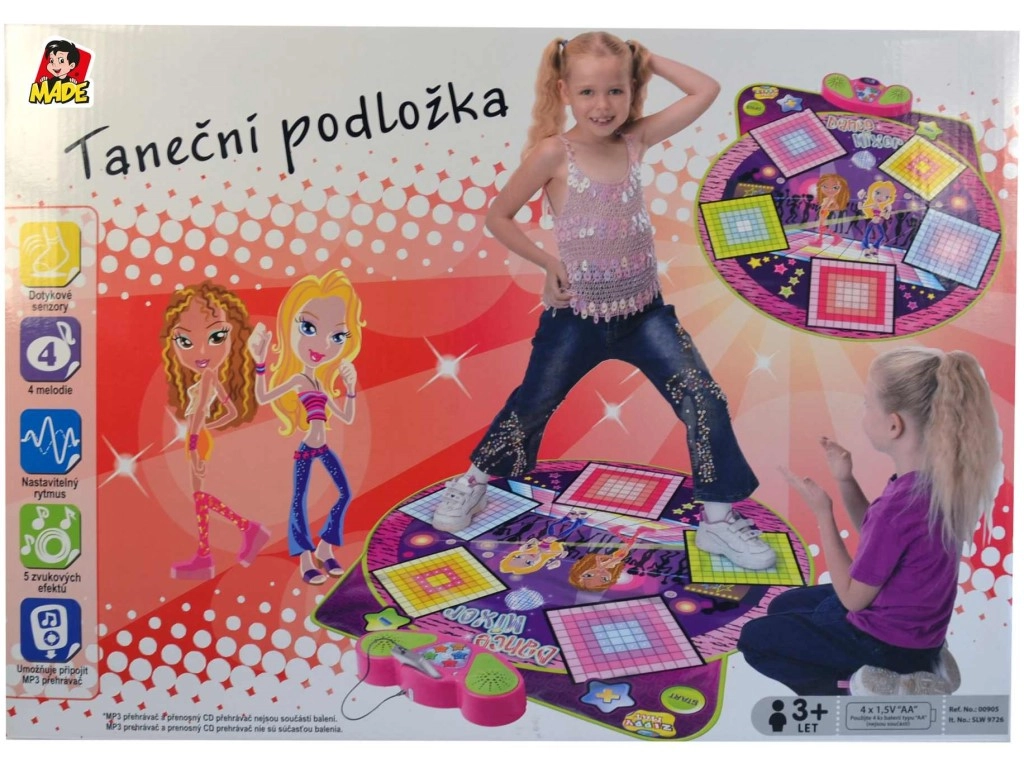 Nyd timevis af bevægelse og musik med denne dansemåtte til børn. Med mulighed for at tilslutte en ekstern afspiller via 3,5 mm jack kan børn danse til deres yndlingssange. Måtten har berøringssensorer, justerbar rytme, 4 indbyggede melodier og specielle lydeffekter for endnu mere sjov. Ideel til børn fra 3 år.