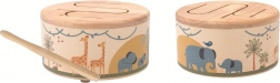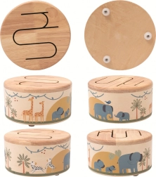 Oplev glæden ved de første rytmer med en børnetromme i træ med safari-motiver. Denne sikre og holdbare tromme af naturligt træ med søde illustrationer af elefanter, giraffer og zebraer leveres med en trommestik og passer perfekt i små hænder. Støtter finmotorik, rytmesans og musikalsk opfattelse – et ideelt valg til den første musikalske udforskning.