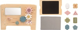 Giv børnene sjov selv under siddetiden med denne multifunktionelle motoriske skammel 2Kids Toys. Under sædet gemmer den en tegnetavle, og på siderne tilbyder den labyrint med dyr, indsætningsformer, tandhjul, ur og spejl. Kombinationen af naturtræ og pastelfarver skaber harmoni og udvikler finmotorik, logisk tænkning og kreativitet.