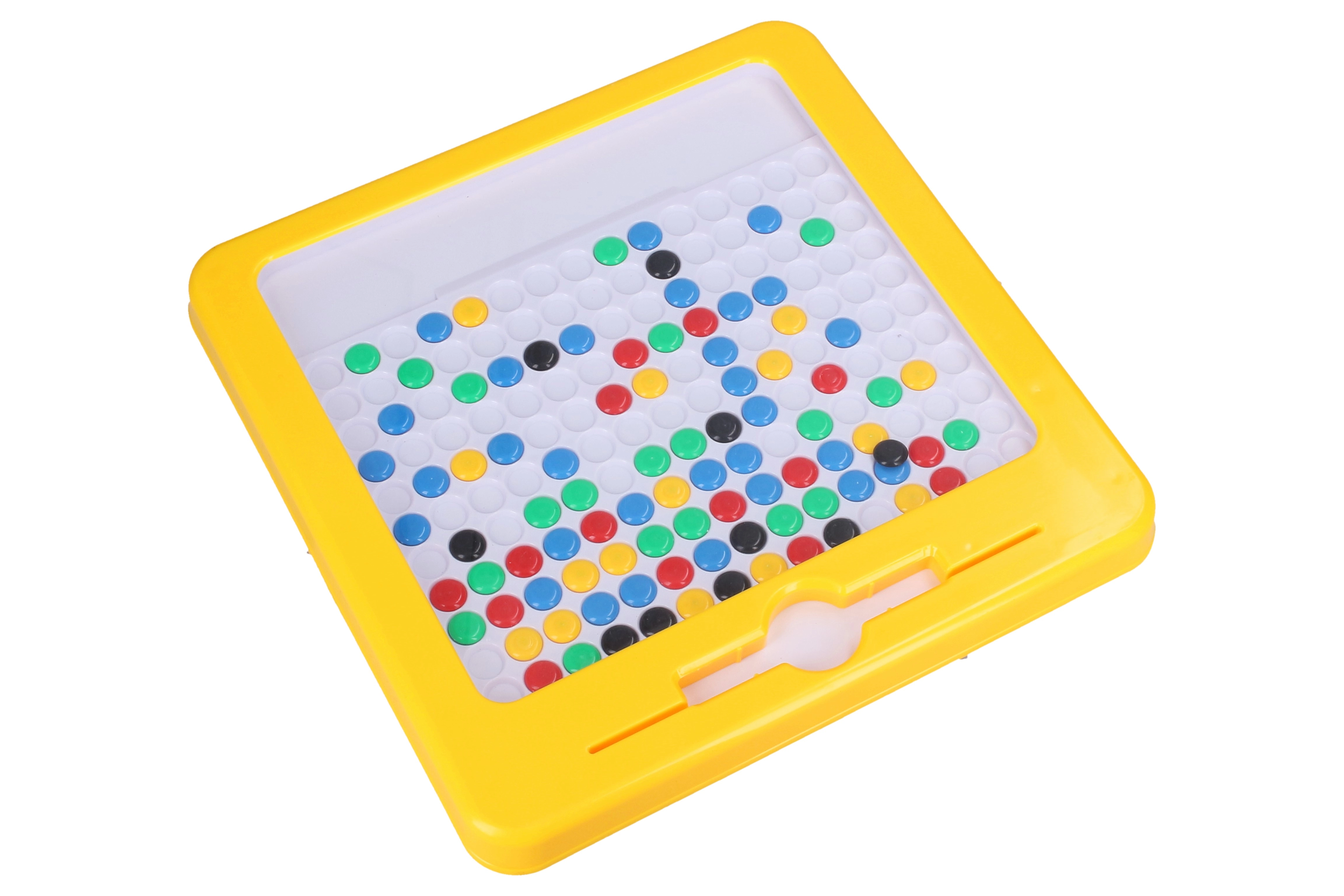 Den magnetiske tegnetavle på 25 cm er et fremragende didaktisk hjælpemiddel, der udvikler fantasi og færdigheder. Børn bruger den magnetiske pen til at samle farvede magneter op, flytte dem til det ønskede sted og sammensætte valgfri motiver. De medfølgende skabeloner med forskellige motiver fungerer som både inspiration og udfordring for små skabere.