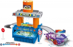 Sjovt sæt til små chauffører: bilvask på 35 cm med en lille bil, der skifter farve efter temperatur. Brug blot koldt eller varmt vand og se den magiske forvandling. Vaskehallen har en blød vandbeholder for nem dosering, og bilen har frihjul for jævn kørsel. Ideel legetøj til at udvikle fantasi og sanseindtryk.