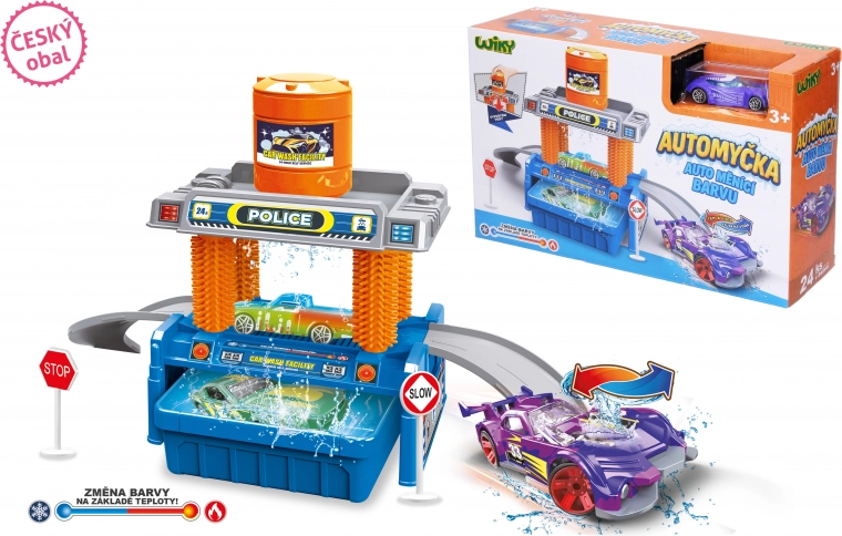 Fyld beholderen, ret vandstrålen mod bilen, og se farverne ændre sig. En ideel gave til børn, der elsker biler og vandeksperimenter.