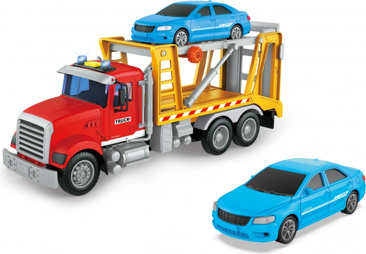 Denne detaljerede trækker med medfølgende bil er et fremragende valg til børn, der elsker køretøjer og actionfyldt leg. Friktionsmotoren muliggør jævn kørsel uden konstant skub, og de effektfulde lys og lyde gør legen mere realistisk. Betjeningen er enkel takket være knappen på kabinen.