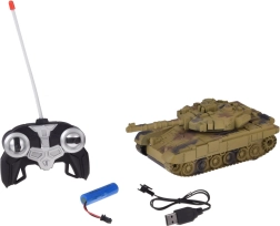- RC-tank, fjernbetjening med fleksibel antenne, batteri, USB-oplader