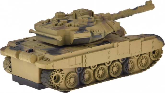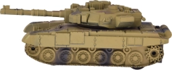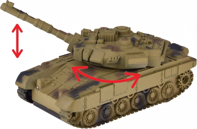 Nyd actionfyldte kampe med en detaljeret RC-tank i ørkenkamouflage. Fjernstyring på 27 MHz muliggør jævn kørsel frem/tilbage, drejning og fuld 360° vending. Tårnet kan drejes manuelt 360°, og lys- samt lydeffekter forstærker den realistiske oplevelse.