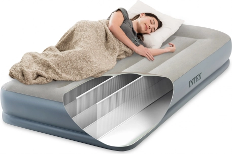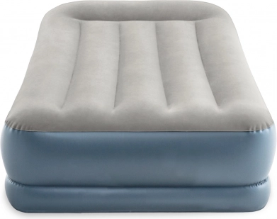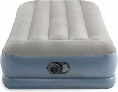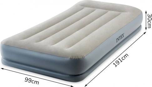 Nyd en behagelig søvn hvor som helst. Denne enkeltsengsmadras fra INTEX kombinerer slidstærk PVC med en flocket (velour) overflade, der er behagelig at røre ved og mindre glat. Den integrerede elektriske pumpe sparer tid og kræfter – på få minutter er den klar til brug.