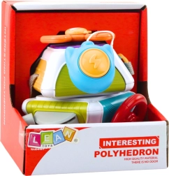 Denne sansekube giver børn fra de første måneder af livet et rigt udvalg af stimuli. Takket være flere funktioner og bevægelige dele udvikles berøringssans, syn og finmotorik, og den motiverer til udforskning. De kompakte mål gør den let at gribe for små hænder og gør den til en fantastisk ledsager til daglig leg hjemme og på farten.
