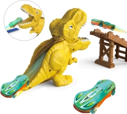 Racerbanen med katapult og dinosaurtema er et fremragende valg til børn, der elsker fart og eventyr. Den mekaniske katapult giver bilen et ordentligt boost, hvilket gør kørslen dynamisk og spændende. Det realistiske dyremotiv stimulerer fantasien og inviterer til at skabe egne historier og racesscenarier.