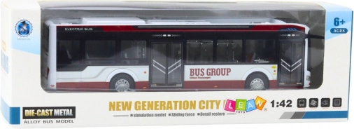 En realistisk metalbybus i skala 1:42, der begejstrer både små og store fans af offentlig transport. Takket være den robuste metal-plast-konstruktion, åbningsbare døre, funktionsklapper og lys- og lydeffekter på batteri virker den som ægte. Med en længde på 28,5 cm er den ideel til leg og samling.