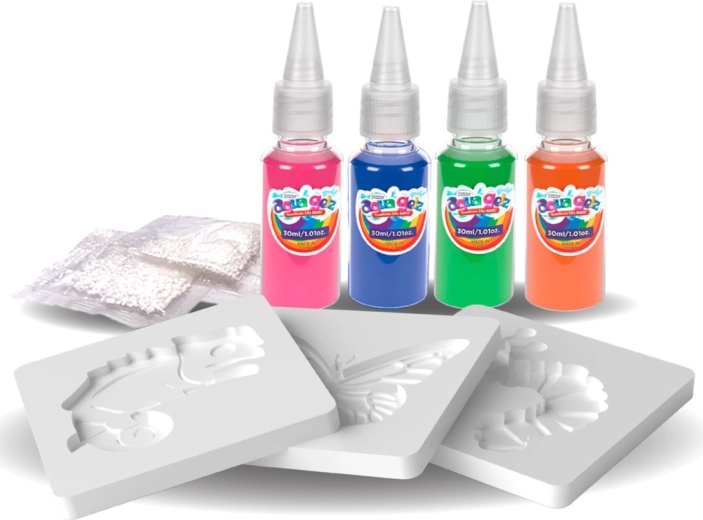 Oplev legende skabelse med AQUA GELZ – et sjovt sæt, der gør det let for børn at lave farverige geléfigurer. Bland det særlige pulver med vand, vælg en form, fyld den med farvede geler og nedsænk kort. På ingen tid bliver den flade tegning til en blød 3D-figur, der selv slipper ud af formen.