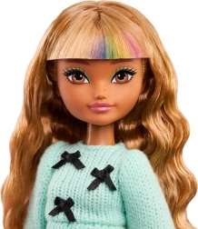 Praktiske tilbehør – kam, “hårlak”, “krøllejern”, telefon i etui, stjernetasken og bog – understøtter fantasien og finmotorikken. Outfittet med mintgrøn cardigan med sløjfer, skinnende sort nederdel og ankelstøvler fuldendes af realistiske detaljer, som børn elsker.