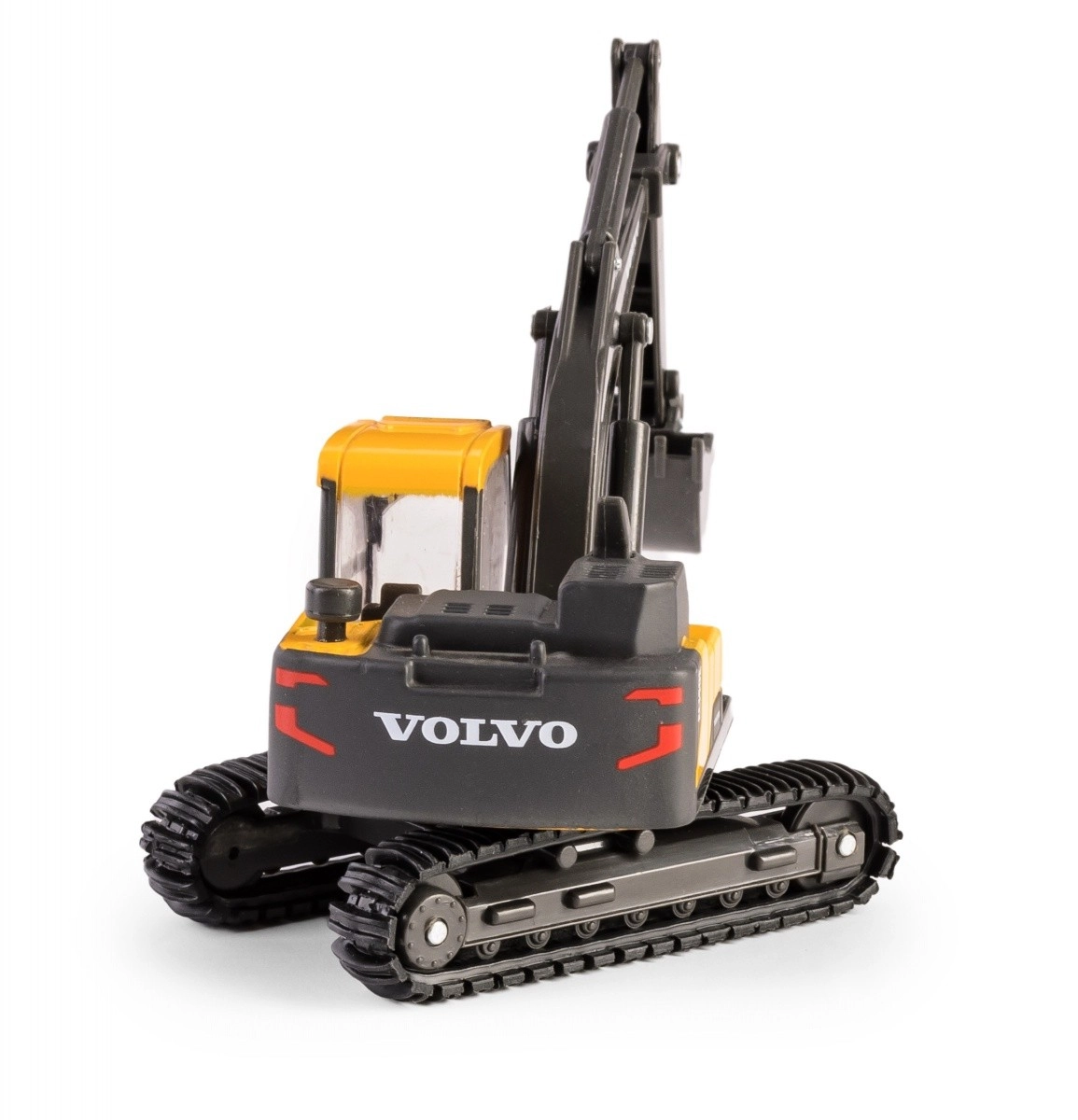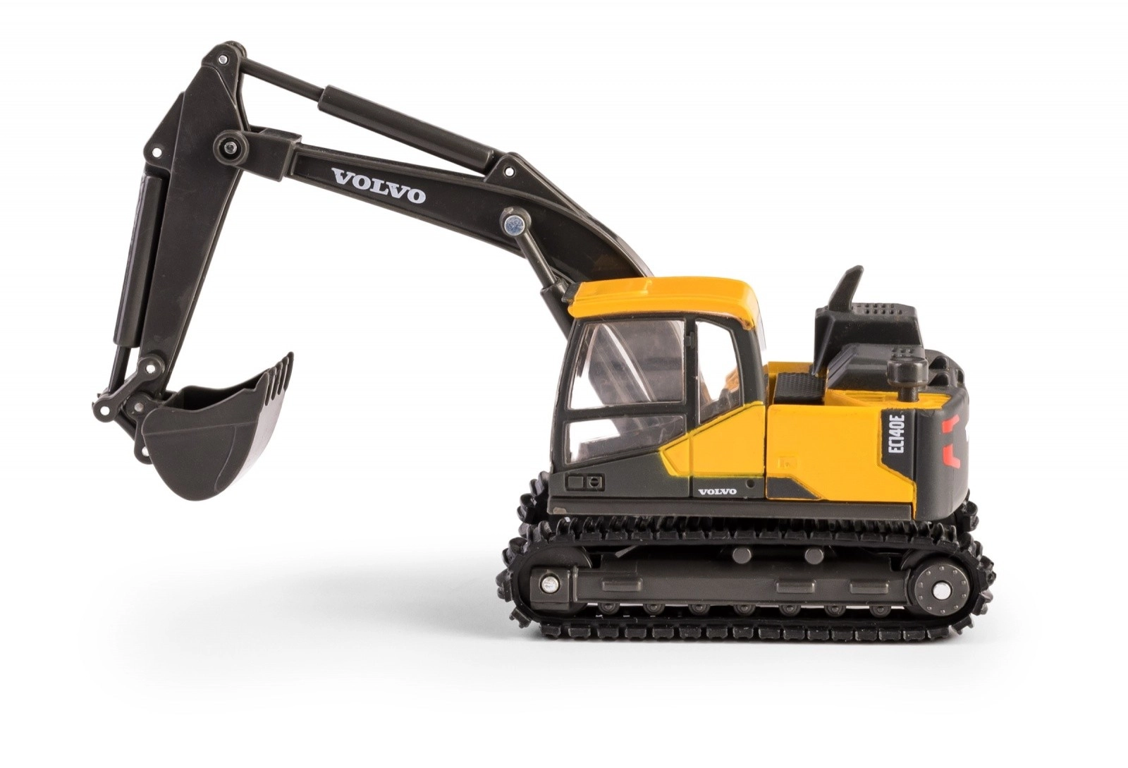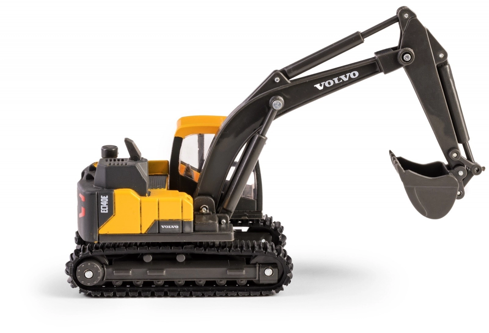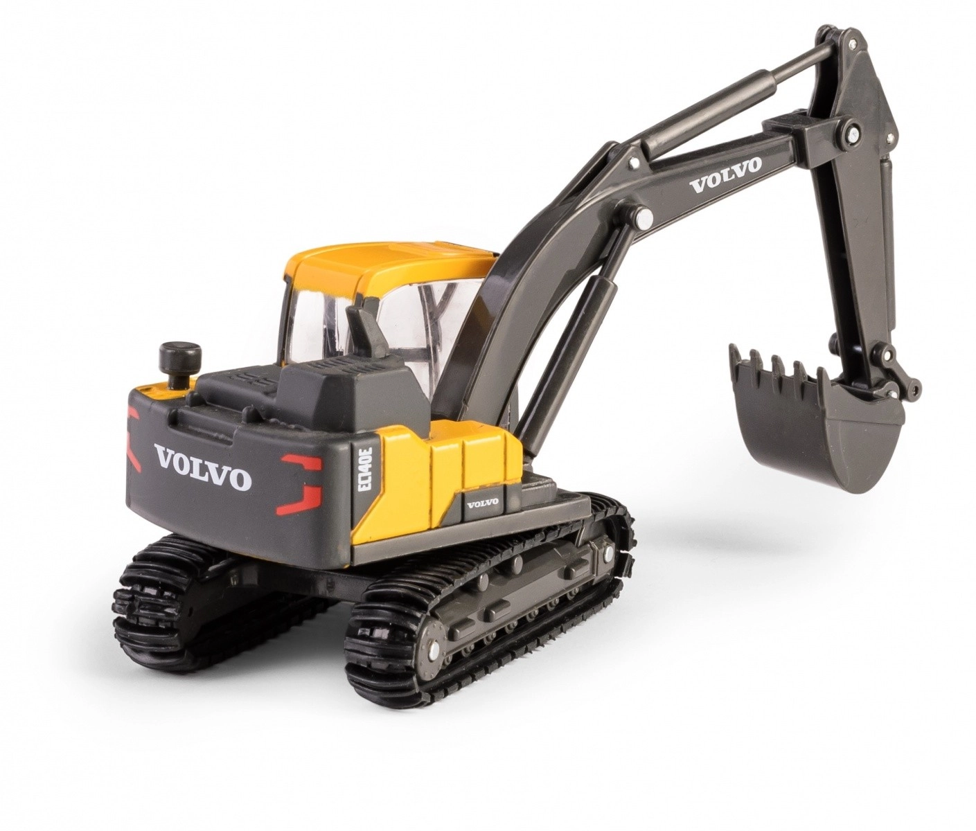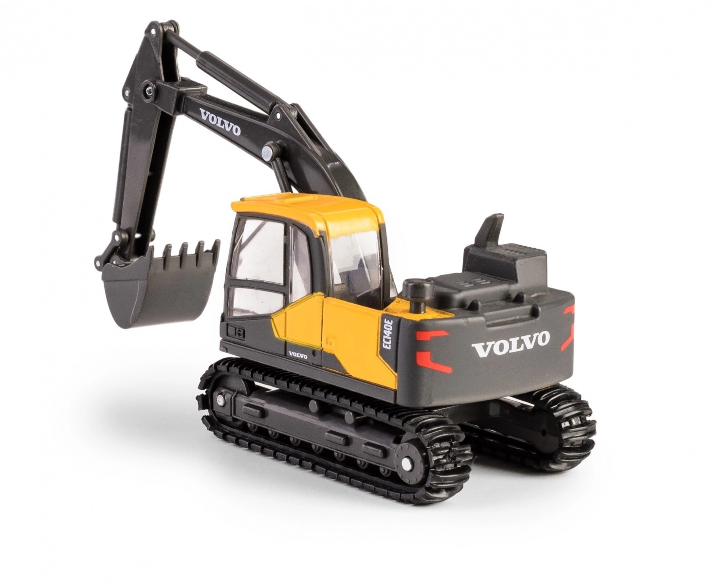 Oplev den detaljerede miniature af gravemaskinen VOLVO EC140E, som udmærker sig ved et robust metalkorpus, naturtro proportioner og funktionelle elementer til realistisk leg. Den bevægelige bom og skovl muliggør opsamling og omhældning af materiale, mens bælterne giver stabilitet på forskellige overflader.
