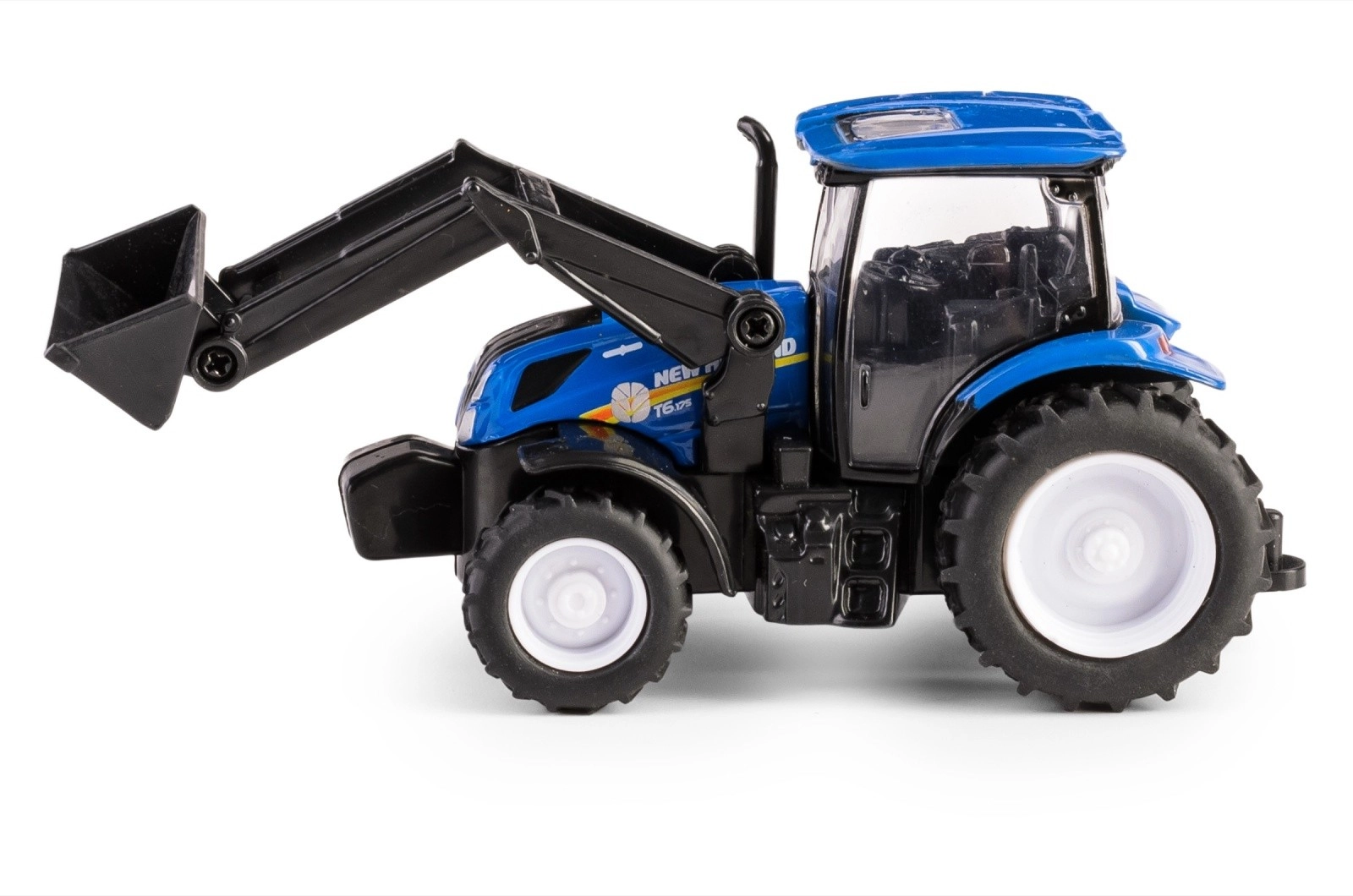 Oplev den realistiske model NEW HOLLAND T6, som imponerer med detaljeret karrosseri, gennemsigtig kabine og en funktionel frontlæsser. Takket være den solide metalkrop og gummidæk virker den autentisk og er samtidig klar til daglig børneleg.