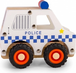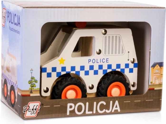 Denne træpolitibil kombinerer en robust trækonstruktion med bløde, gribende hjul for jævn kørsel på forskellige overflader. Sikre, ugiftige farver og afrundede kanter giver bekymringsfri leg, også for mindre børn.